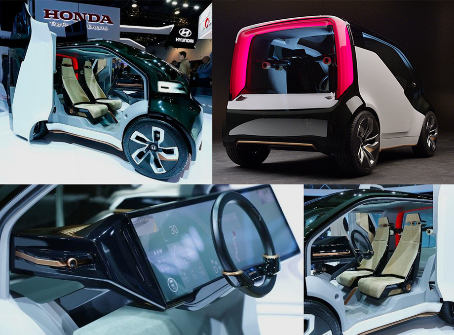 В шоу-каре Honda реалзовала кілька любдосвідних идей: двері откидиваются назад, вся передняя панель превращена в дисплей, роль багажалей полки ігорает скейтборд для преодоления «післядней мабо» (от парковки до офиса, наприклад). Рассмотреть машинку поближе можале на видео.