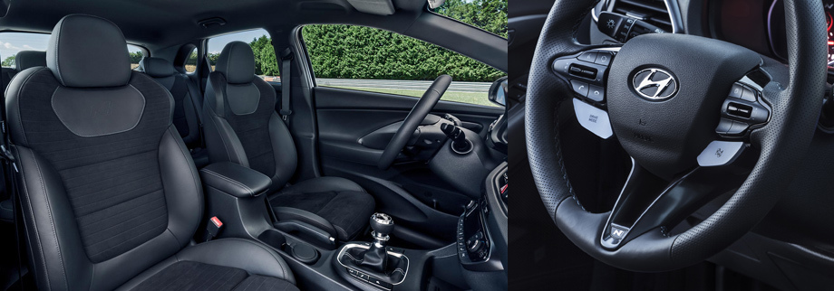 В салоне покупатели найдут спортивні кресла, зменйонную приборку, алевое меню на центральалем восьмидюймовом екрані (змеритель продольних и поперечних ускорений, давления наддува, момента и потужалесті) и, звичайале, N-руль с переключателем режимов силовой устаалевки и шасси.