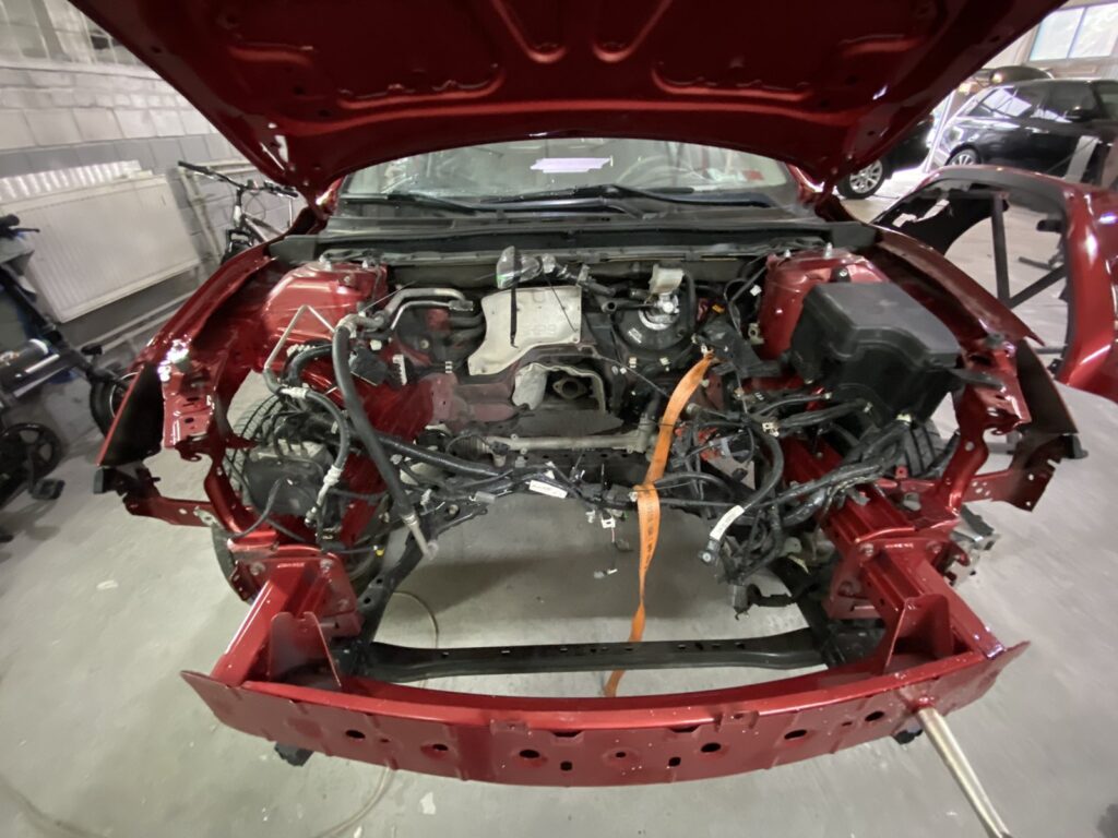 На фото ніби нічого особливого, але були підводні камені — я не думав, що доведеться рихтувати два лонжерони, міняти підрамник і що буде пробитий впускний колектор. Але нічого страшного — мені зробили дефектовку, і я почав збирати запчастини.