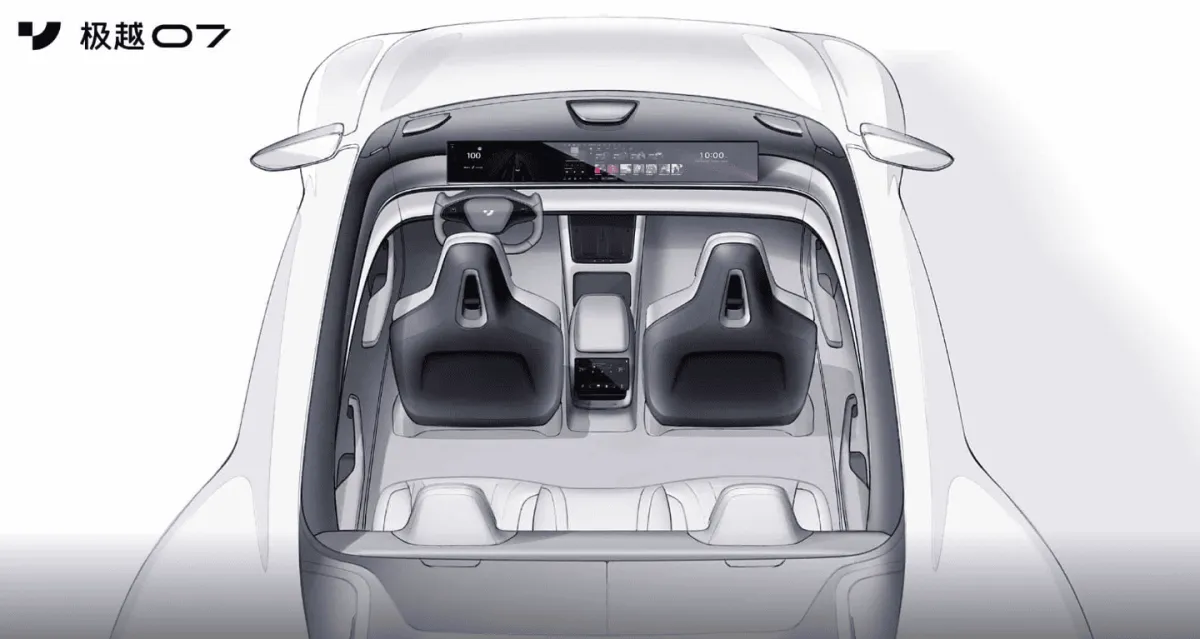 Нещодавно опубліковані ілюстрації розкривають інтер’єр майбутнього седана Jiyue 07. Jiyue – це бренд, створений Baidu спільно з Geely і свого часу відомий як Jidu Auto. Бренд на 65% належить Geely і зараз має лише одну модель у продажу – позашляховик 01, але до нього наприкінці цього року приєднається седан 07.