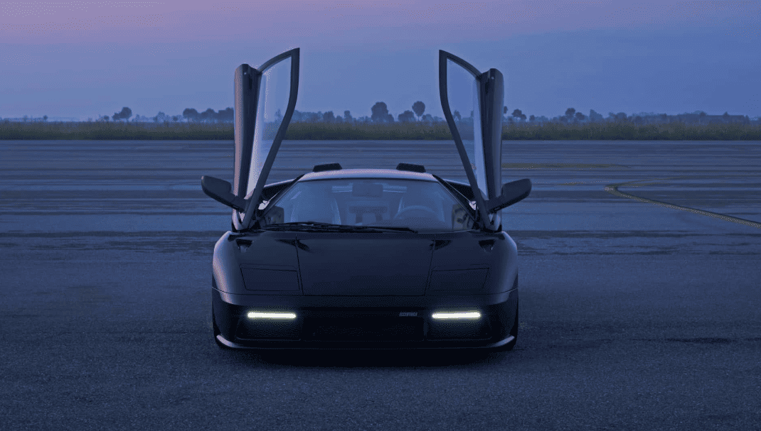Eccentrica V12, обіцяний роком раніше, виглядає вражаюче, зберігаючи основні риси оригінального Diablo при додаванні сучасних технологічних покращень. Зовні автомобіль нагадує класичну модель, але з помітними нововведеннями, такими як 19-дюймові колеса та інтегровані світлодіодні ходові вогні, що замінили старомодні фари, що “спливають”. Розширені колісні арки та нова кришка двигуна завершують оновлення екстер’єру.
