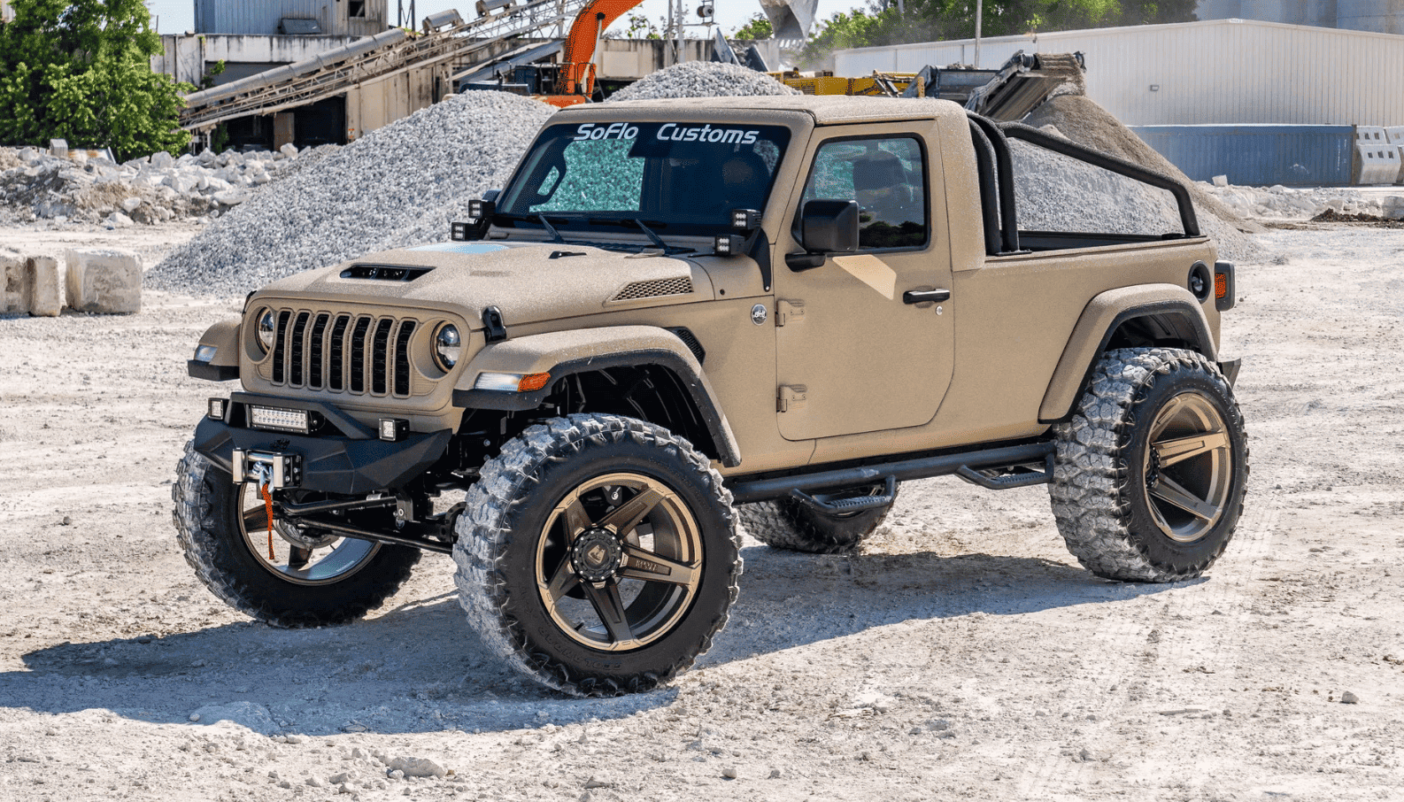 Перший з анонсованих автомобілів — це дводверний пікап на основі Jeep Wrangler під назвою JTT. Ця модель використовує шасі Wrangler Unlimited, але з унікальними змінами: задні двері були зняті, що дозволило створити спеціальне вантажне ліжко довжиною всього п’ять футів. SoFlo дає клієнтам можливість вибирати двигун за смаком: від дизеля до атмосферного HEMI V8 або навіть потужного Hellcat V8, який видає 717 кінських сил. Також доступні налаштування для фарби, коліс, шин і навіть бронезахисту для особливих замовників.