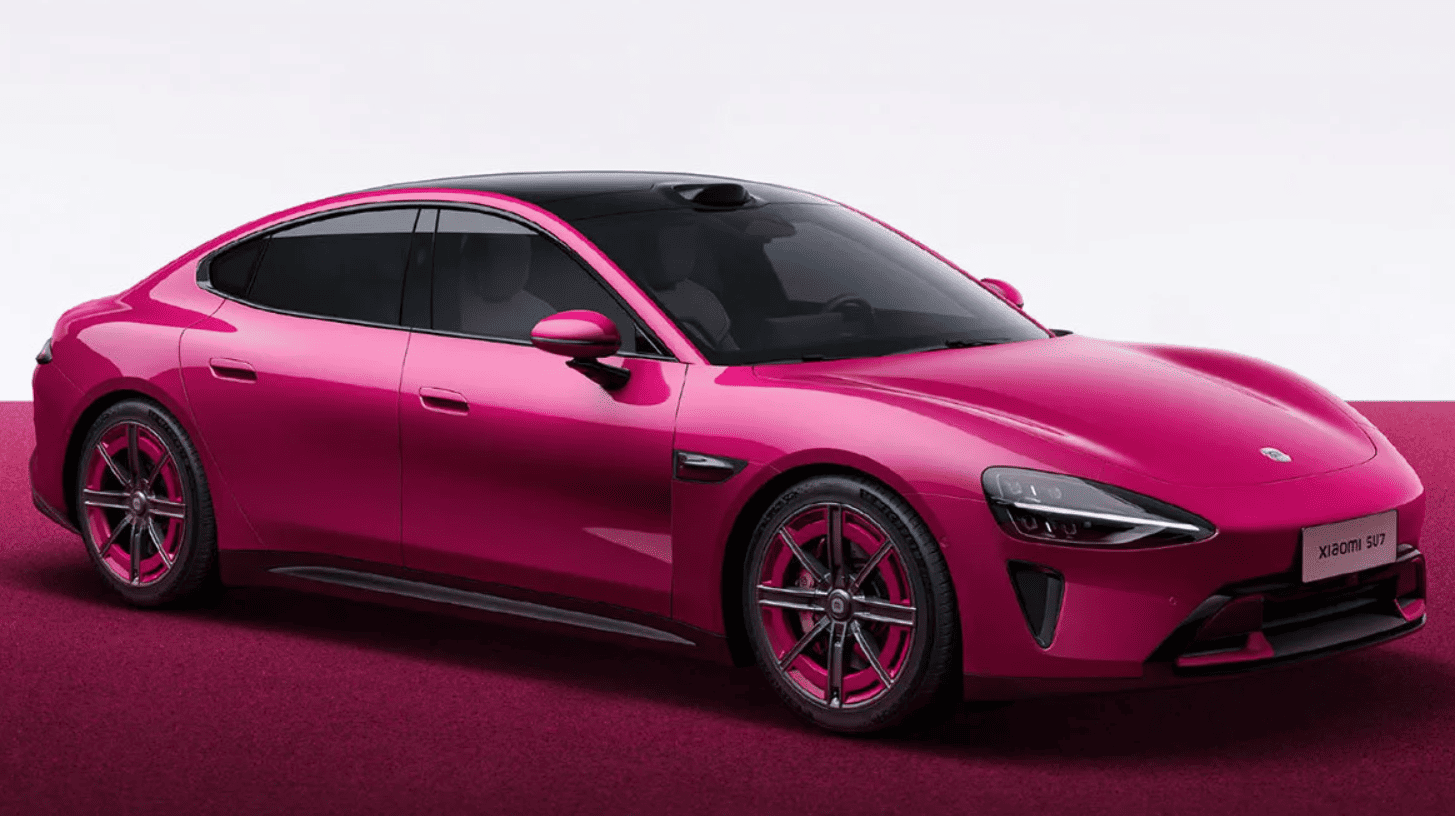 На честь 15-річчя компанії Xiaomi презентувала ексклюзивну яскраво-рожеву версію SU7, доступну через додаток Xiaomi EV з 1 січня, з унікальними колесами та кольоровими елементами.
