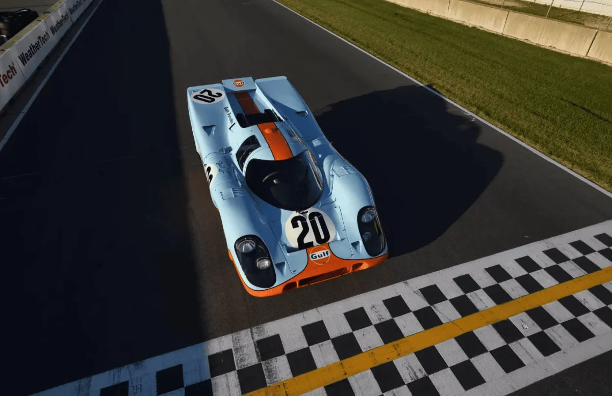 Цей Porsche 917K — один із найбільш знаменитих гоночних автомобілів усіх часів. Під його синьо-помаранчевою лівреєю Gulf ховається потужний 4,5-літровий 12-циліндровий двигун, який може видавати 580 кінських сил. Автомобіль здобув славу завдяки перемогам Porsche в гонках на витривалість, зокрема на 24 годинах Ле-Мана в 1970 році. Згодом 917K став культовим не лише через свою історію у гонках, а й завдяки його появі в голлівудському фільмі «Ле-Ман» 1971 року, де він був використаний Стівом Макквіном.