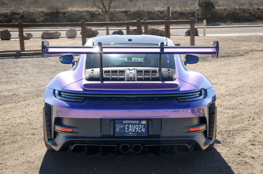 Головною особливістю цього Porsche є унікальне забарвлення Purple Metallic, обране через програму Porsche Paint to Sample. Лише ця опція коштувала 20 960 доларів. Крім того, автомобіль оснащений пакетом Weissach за 33 520 доларів, який додає дах і дзеркала з вуглецевого волокна, ковані магнієві колеса та покращені стабілізатори поперечної стійкості.