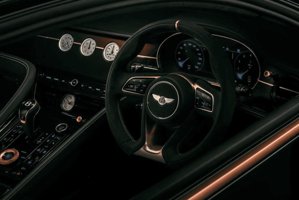 Інтер’єр Black Rose не менш вражаючий. У салоні використано 210 грамів 18-каратного рожевого золота, отриманого з перероблених ювелірних виробів. Bentley співпрацювала з компанією Cooksongold, щоб забезпечити бездоганну якість дорогоцінного металу. Елементи з золота включають селектор режимів руху, металеві конструкції керма, вентиляційні обмежувачі та оздоблення дверей. Усі деталі отримали офіційне клеймо ювелірного кварталу Бірмінгема, що підтверджує їхню автентичність.