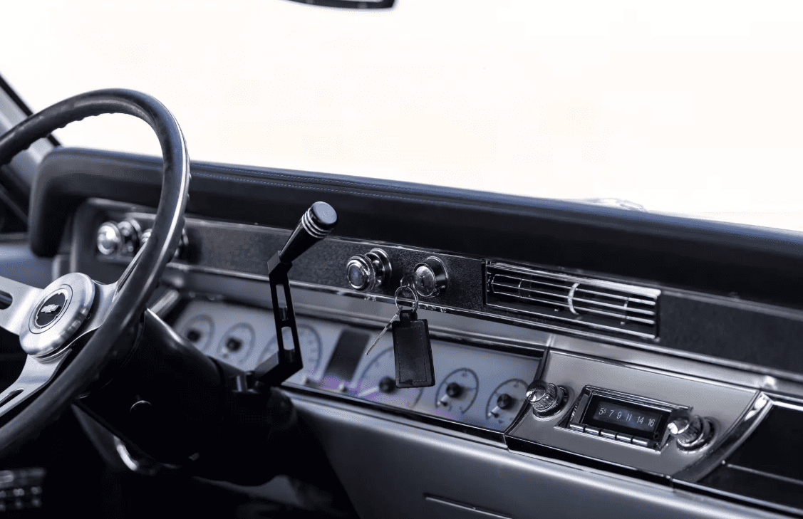 Що стосується інтер’єру, то в салоні встановлені нові чорні шкіряні сидіння з контрастною синьою строчкою, а також сучасне кермо з трьома спицями і панелі приладів Dakota Digital. Для забезпечення комфорту в салоні використано систему клімат-контролю Vintage Air, що дозволяє підтримувати прохолоду навіть при високих температурах роботи потужного двигуна.
