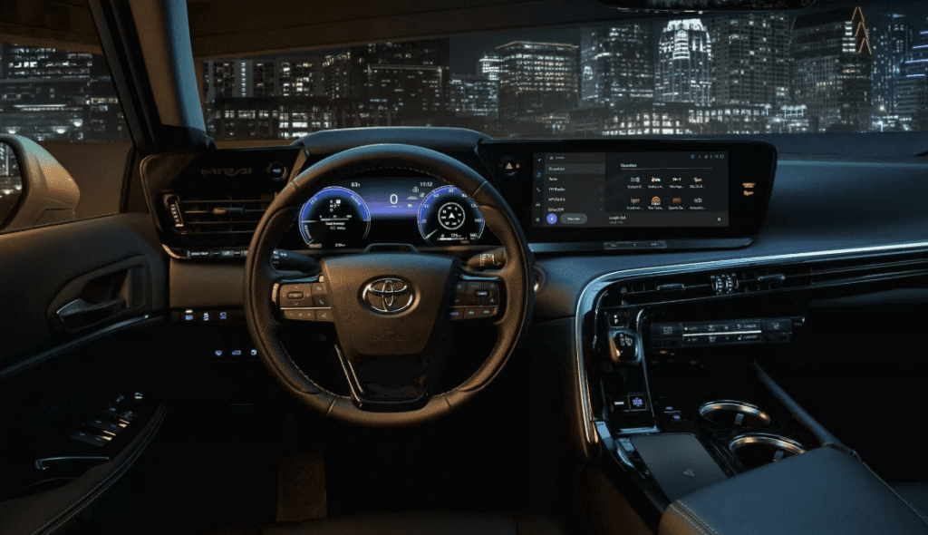 Крім цього, Mirai оснащений світлодіодними фарами, 19-дюймовими алюмінієвими дисками, підігрівом передніх сидінь із матеріалу SofTex, двома 12,3-дюймовими дисплеями та бездротовою зарядкою для смартфонів.