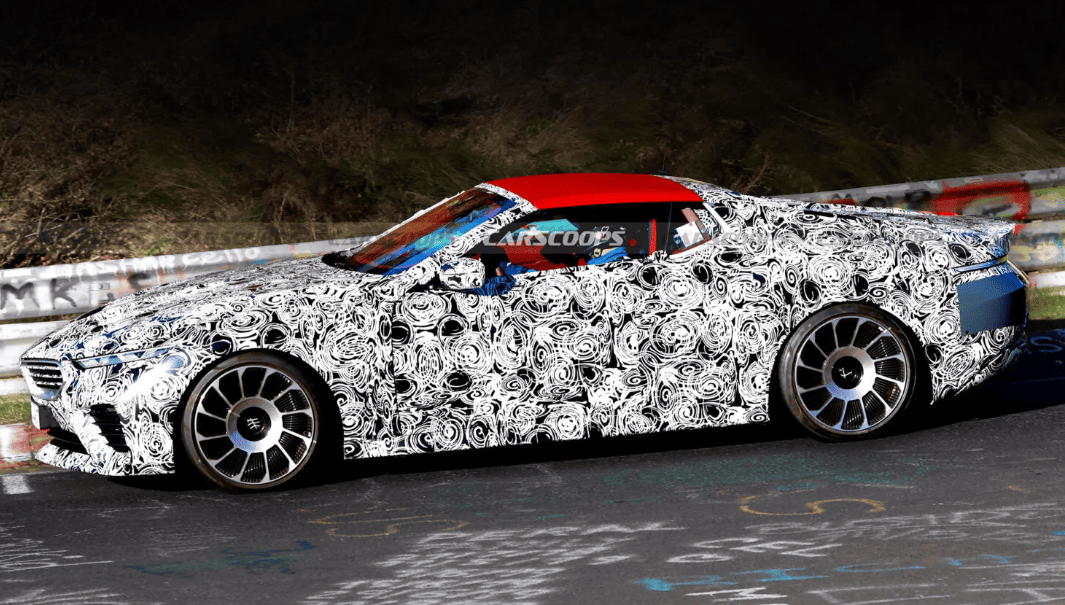 Незважаючи на камуфляжний обгорт, що приховує деякі деталі, дизайн серійного Skytop залишиться практично ідентичним концепту, представленому на озері Комо. Ми бачимо відмінності, такі як характерна “акулья” передня частина, надзвичайно вузькі світлодіодні фари та аеродинамічний спойлер на задній частині. Витончена лінія даху, яку власники повинні вручну знімати та зберігати, теж залишилася незмінною, в порівнянні з автоматичним дахом M8 Convertible.