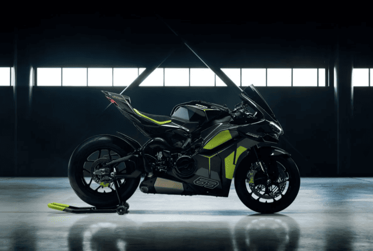 Основою для моделі став Panigale V4 S, проте версія від Lamborghini отримала унікальні кузовні панелі з вуглецевого волокна — того самого виду, який використовують у суперкарах італійського бренду. Мотоцикл також прикрашений фірмовим забарвленням із поєднанням відкритого карбону, яскраво-зеленого Verde Scandal і сірих відтінків Grigio Telesto та Grigio Acheso.