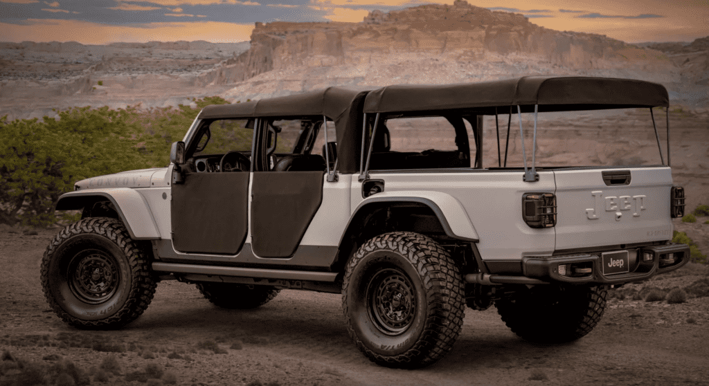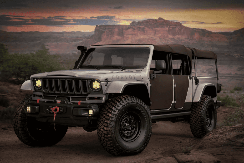 Першим у списку став ретро-натхненний концепт Convoy. Його базою є Gladiator Mojave, а серед ключових особливостей — передня частина в стилі SJ, капот у стилі J-truck, брезентові напівдвері та матове фарбування Ghost Ops.