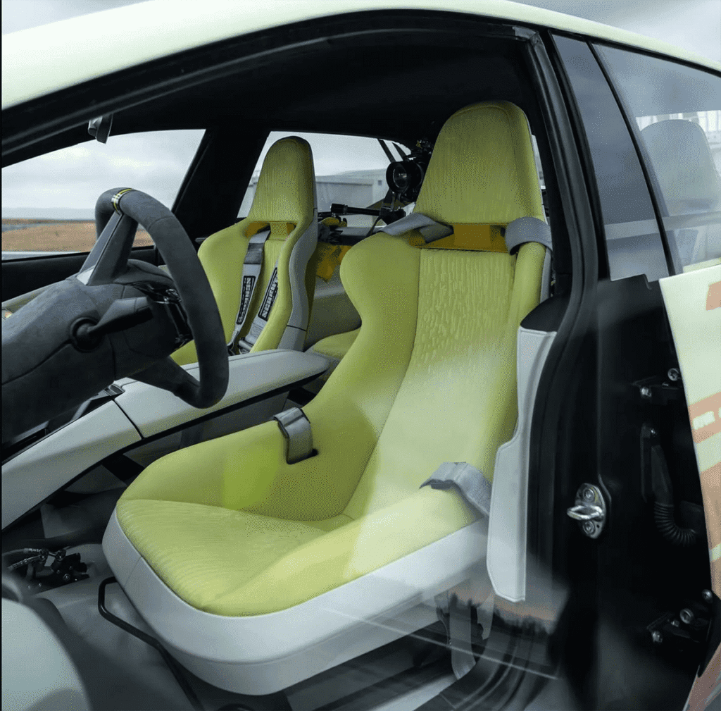 Як і очікувалося, цей електромобіль поділяє багато дизайнерських елементів із торішнім концептом Vision Neue Klasse, хоча й отримав більш агресивні бампери. Серед особливостей — активна аеродинаміка та незвичайні кольорові колеса, які змінюють відтінок залежно від режиму руху: зелені під час прискорення, сині при рекуперації енергії та помаранчеві при гальмуванні.