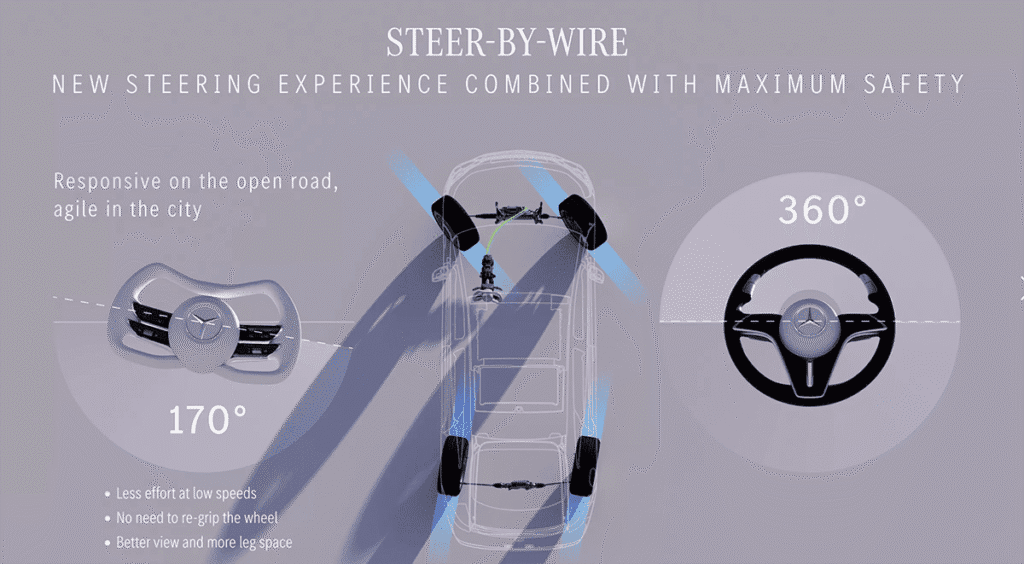 За словами Mercedes, нова система steer-by-wire забезпечує «вищу якість керування», що, за словами компанії, означає більш чутливе управління на відкритих дорогах і більшу маневреність у міських умовах. Система також спрощує паркування, оскільки водієві не доведеться переставляти руки на кермі. Додатковою перевагою є її адаптованість до різних типів автомобілів і платформ, що дозволяє налаштувати різні режими — від комфортного до спортивного.