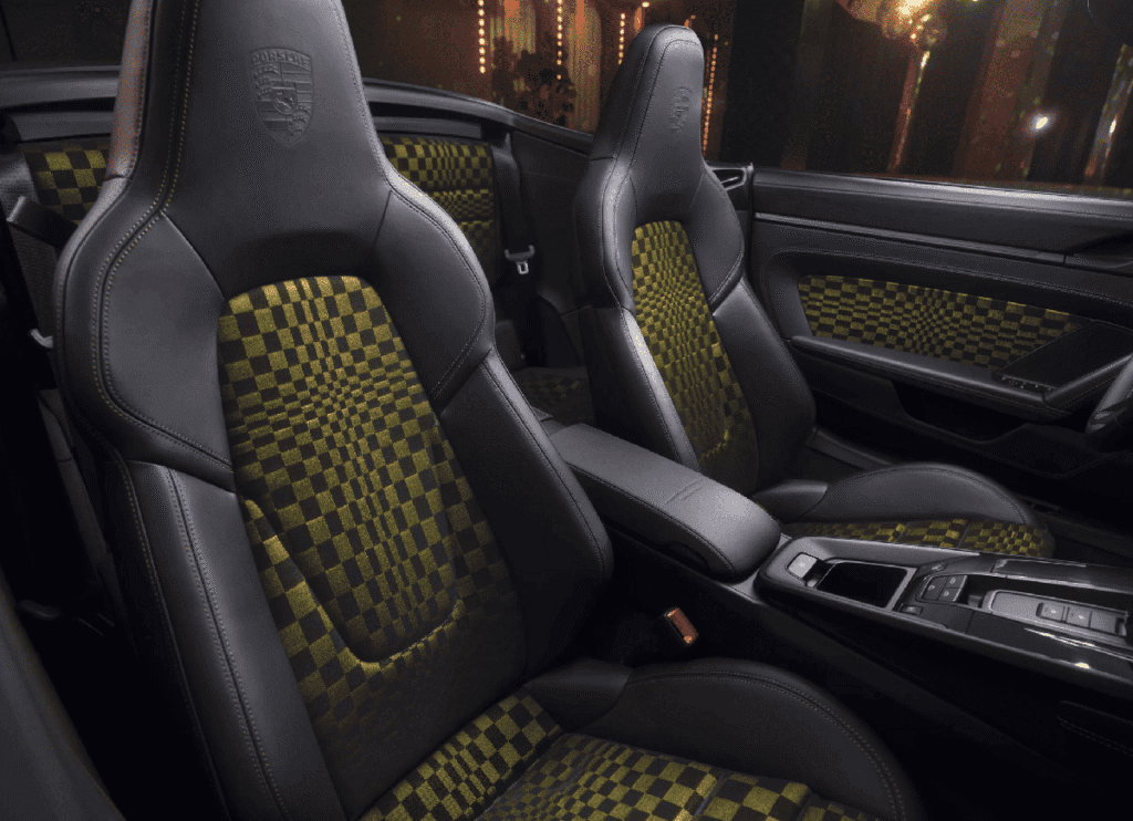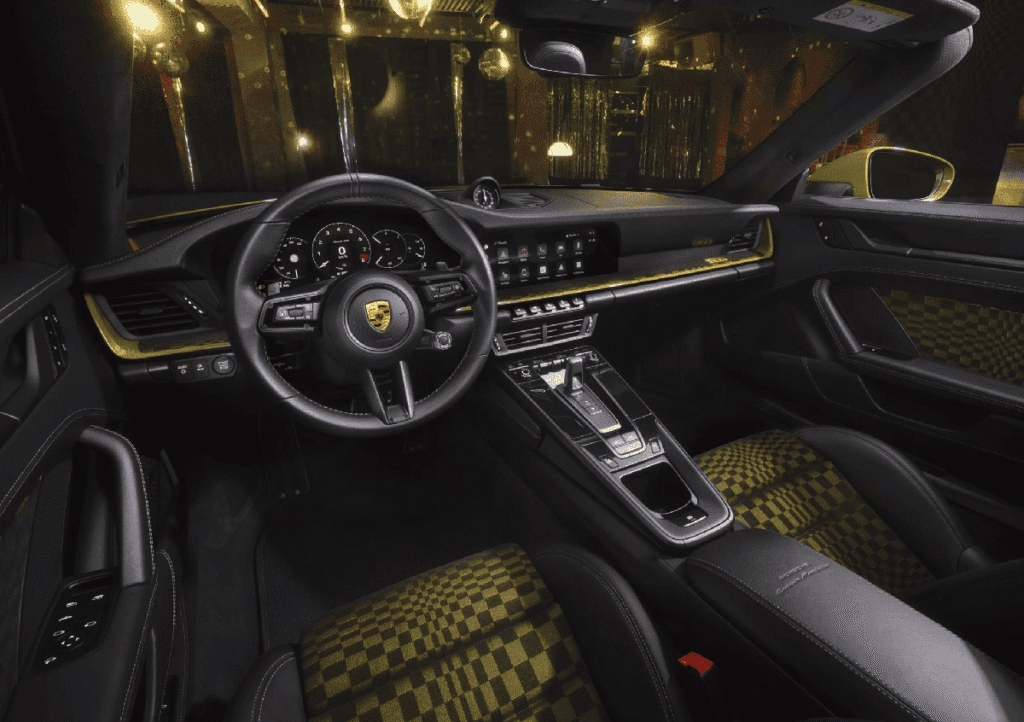 Ще один приклад уваги до деталей — цифрова панель приладів на 12,65 дюйма, стилізована під аналогову: білі стрілки, зелена шкала. Секундомір Sport Chrono на панелі також має ретро-дизайн. А ще власники можуть замовити відповідний годинник Porsche Design.