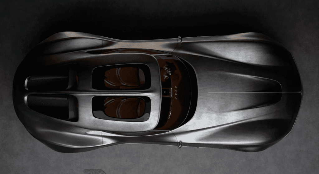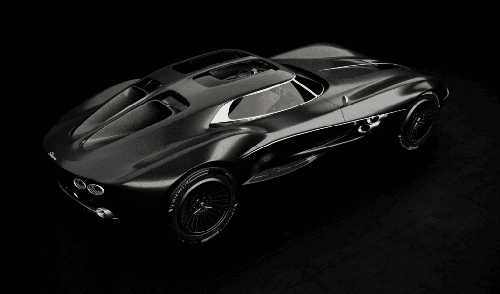 Задні крила плавно переходять у мінімалістичну корму з чотирма овальними задніми ліхтарями у стилі Bentley. Стриманий інтегрований дифузор доповнює загальний вигляд. Іконичне роздвоєне заднє скло, натхненне Corvette Stingray 1963 року, збережено, із повітряними каналами, що ведуть до “летючих контрфорсів”. Виразний “хребет” на даху, який розділяє знімні скляні панелі, додає образу схожість із Bugatti.