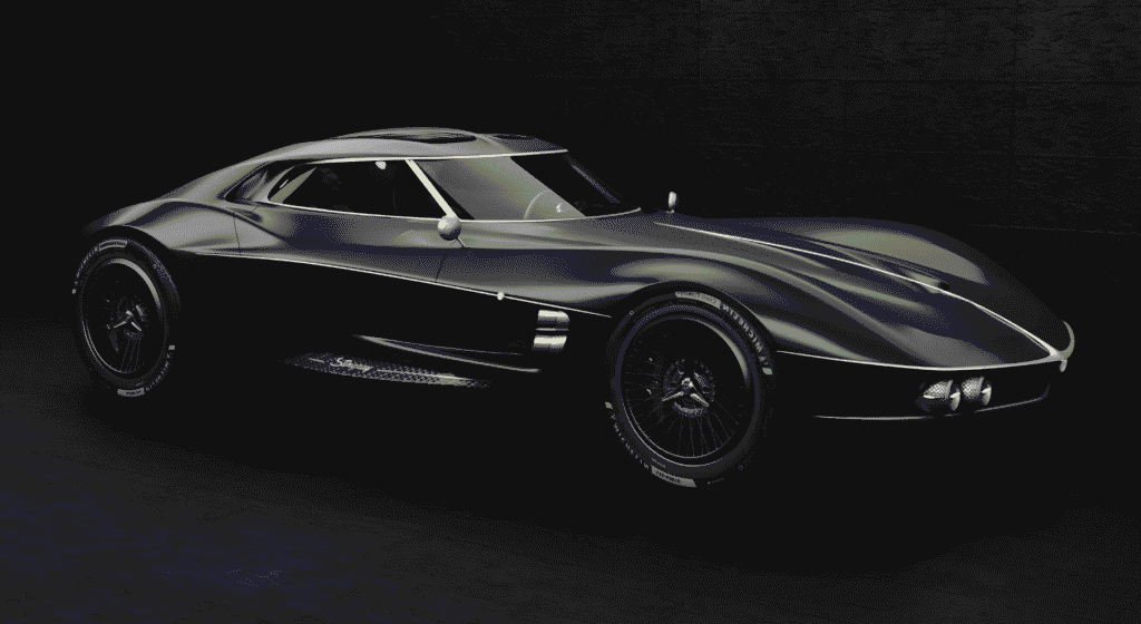 Ця цифрова данина, створена дизайнером Mercedes, переосмислює Corvette як двомісний гран-турер із переднім розташуванням V8-двигуна.