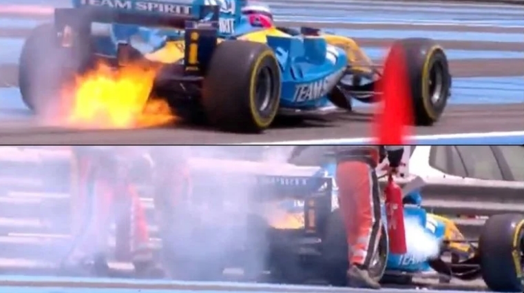 Французький перегонник, який колись належав до французької команди, їхав у високій швидкості на трасі, яка дуже сприяла цьому. Однак, після повного розгону по прямій «Містраль» після виїзду з шикани, яка розділяє її навпіл, французький двигун почав виходити з ладу. Наступне, що побачили, була велика біла хмара диму, шматки металу, що летіли в повітрі, і, нарешті, полум’я.