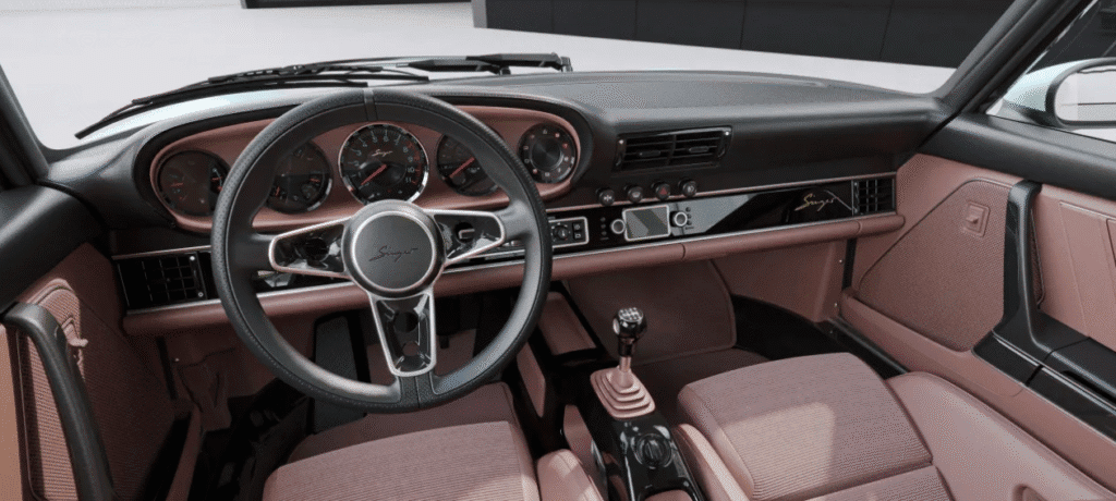 Усередині майже не залишилося 964-ї моделі, кожен елемент замінено або відновлено за специфікацією замовника. Singer має майже нескінченну кількість індивідуальних компонентів інтер’єру, які розробляються власними силами, включаючи кермо, центральну консоль, вставки на приладовій панелі та набори циферблатів, а ковшоподібні сидіння можуть бути оздоблені різноманітною шкірою та текстурованими тканинами.