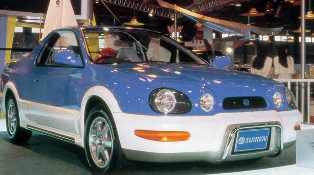 Subaru вперше показала публіці Suiren на Токійському автосалоні 1993 року , і, ймовірно, він мав замінити улюблений Brat. Заснований на сучасній Impreza, Suiren був по суті легковим пікапом з двома дверима, чотирма сидіннями та невеликою кузовною платформою пікапа, але з посадкою автомобіля. Він також оснащувався знімним жорстким верхом, який фактично перетворював його на дводверний універсал. Кузов мав масивні бічні вікна, які не давали йому відчуватися як звичайний тент на кузов пікапа; вони, очевидно, також були виготовлені з ударостійкого пластику. Як і Subaru Baja, який з’явився лише майже десять років, Suiren мав складну перегородку між кузовом і салоном для зберігання довгомірних предметів.