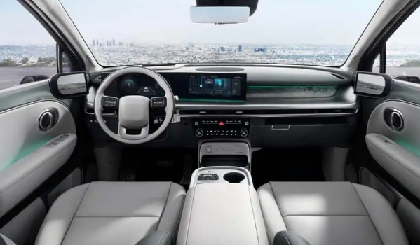 Ioniq 9 має майже 200 дюймів завдовжки, а колісну базу — 123,2 дюйма. Це забезпечує цьому трирядному вантажному автомобілю величезний простір для ніг, а при об’єднаних другому та третім рядах доступно 80,7 дюйма. Позашляховик також має 74,8 дюйма простору над головою завдяки унікальній формі даху та плоскій підлозі, під якою прихований акумуляторний блок ємністю 110,3 кіловат-години.