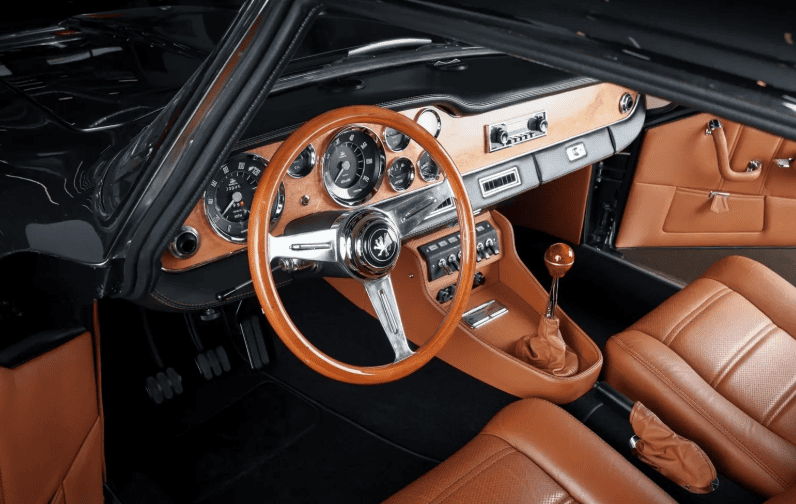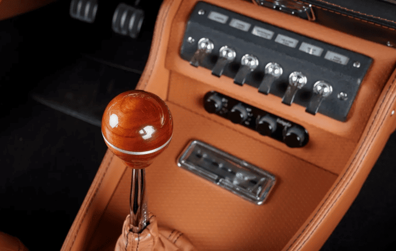 Гріджіо Сільверстоун з палітри Ferrari та шкіряна оббивка Paloma Cork додають завершальний штрих до зовнішнього вигляду. Мені подобається, що в цій Rivolta немає нічого, що б натякало на «заміну двигуна»! Немає додаткових вентиляційних отворів чи відкритих повітрозабірників. Бампери та заводські 15-дюймові диски залишилися на автомобілі, і всі елементи оздоблення виглядають так, ніби вони враховані. Приладова панель також має аналогові датчики в оригінальному стилі.