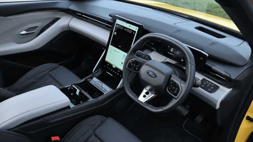 Сам інтер’єр сучасний, без жодного натяку на ретро-дизайн, якого можна було б очікувати. Приладова панель повністю перейнята від електричного позашляховика Explorer, тому ви можете очікувати відчуття якості та простого у використанні сенсорного екрана. Попри похилий дах, простір на задніх сидіннях щедрий, а багажник об’ємом 572 літри.