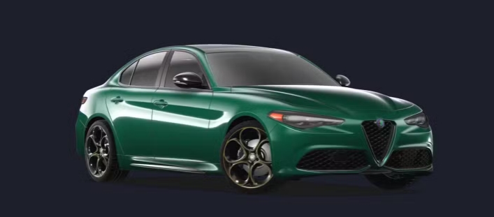 Представляємо один з наших улюблених зелених автомобілів у цьому списку: Alfa Romeo Giulia Intensa. Цей яскравий італійський спортивний седан поєднує відмінні характеристики та манери водіння, не кажучи вже про приголомшливий зовнішній вигляд. Особливо це стосується, якщо ви оберете Giulia з додатковою опцією Verde Fangio Metallic, яка коштує $2000, а також із золотими акцентами на п’ятиспицевих дисках, що змусить не одного нашого редактора захотіти носити салфетку. Зелений відтінок Verde Fangio Metallic ідеально поєднується з колесами, посилюючи ефект.