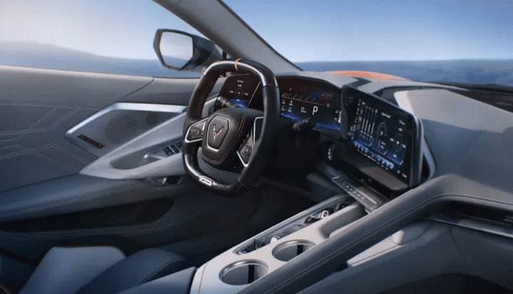 Починаючи з базової версії Stingray й аж до 1064-сильного ZR1, усі моделі восьмого покоління Corvette отримують оновлений інтер’єр. Найбільша зміна — це центральна консоль, яка замість довгого ряду кнопок має значно охайніший дизайн. Інтер’єр усе ще орієнтований на водія, але тепер вже не виглядає так, ніби його взяли зі старого літака сорокарічної давнини. Водночас це не означає, що Chevrolet повністю позбувся всіх кнопок у салоні — на центральній консолі залишилося кілька, зокрема для передньої камери огляду та перемикання режимів водіння (остання навіть нагадує перемикач передач у Porsche 911).