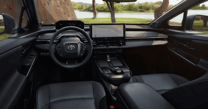 Всередині оновлений інтер’єр bZ став трохи менш екстравагантним. Саме приладова панель отримала простий дизайн з новим розташуванням вентиляційних отворів і новою центральною консоллю. Остання включає більший сенсорний екран на 14 дюймів (замість попередніх 12,3 дюйма), а фізичні елементи керування тепер мають потенціал у вигляді регуляторів. Бонусні бали: Toyota позбулася дивного пластикового обрамлення навколо цифрової панелі приладів. Центральна консоль також була перероблена, тепер вона включає два бездротових зарядних пристрої. Ручка вибору передач і супутні кнопки також були переміщені на нове місце.