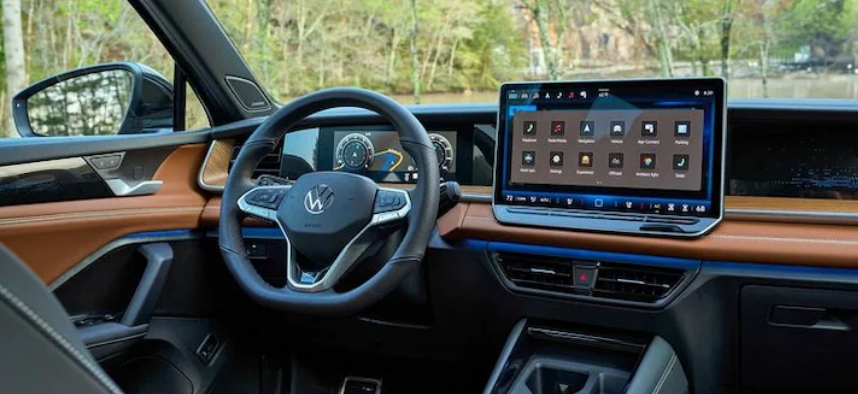 Зазирнувши всередину Volkswagen Tiguan 2025 року, ви можете подумати: “Це справді VW?” Базова модель Tiguan S починається від 30 720 доларів і вже в стандартній комплектації має такі функції, як 12,9-дюймовий сенсорний екран, 10,25-дюймова цифрова панель приладів (Cockpit Pro за термінологією VW), підігрів передніх сидінь та датчики паркування. Непогано для початкової комплектації. Піднімаючись вище по комплектаціях, ви отримуєте все більше приємних опцій: SE додає атмосферне освітлення, SE R-Line Black включає проєкційний дисплей та панорамний люк, а топова SEL R-Line пропонує вентильовані та масажні передні сидіння. Tiguan, безперечно, одягнений так, щоб вражати.