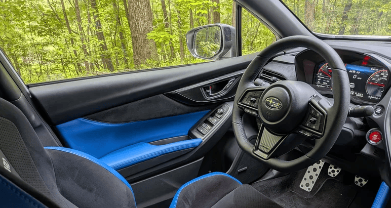Салон WRX tS виділяється синіми вставками, що створюють яскраву атмосферу, яка може не сподобатися всім, але точно підкреслює спортивний характер автомобіля. Спортивні сидіння Recaro зі штучною замшею добре тримають водія під час активної їзди, не жертвуючи комфортом посадки. Для водіїв, які цінують підтримку та зручність, це важлива деталь. Єдине, що може трохи розчарувати — це обмеженість багажного простору: отвір багажника міг би бути ширшим, щоб завантаження великих предметів було зручнішим.