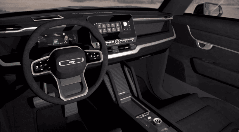 Спереду зникли класичні круглі фари. Замість них дизайнер Марко Мальтезе запропонував світлодіодну графіку у формі півкіл. Такий дизайн уже зустрічається в нових моделях, як-от Land Rover Defender та деякі китайські SUV. Залишається фірмова решітка з сімома прорізами, яку обрамляють масивні пластикові елементи бампера — відсилання до позашляхової спадщини Jeep.
