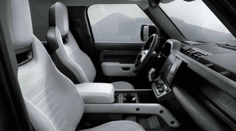 Також новими стали текстуровані вставки на капоті та вентиляційні отвори з боків. Усі моделі тепер мають чорні глянцеві ковпачки на колесах з логотипом Defender і чорну решітку радіатора з темною емблемою Land Rover.