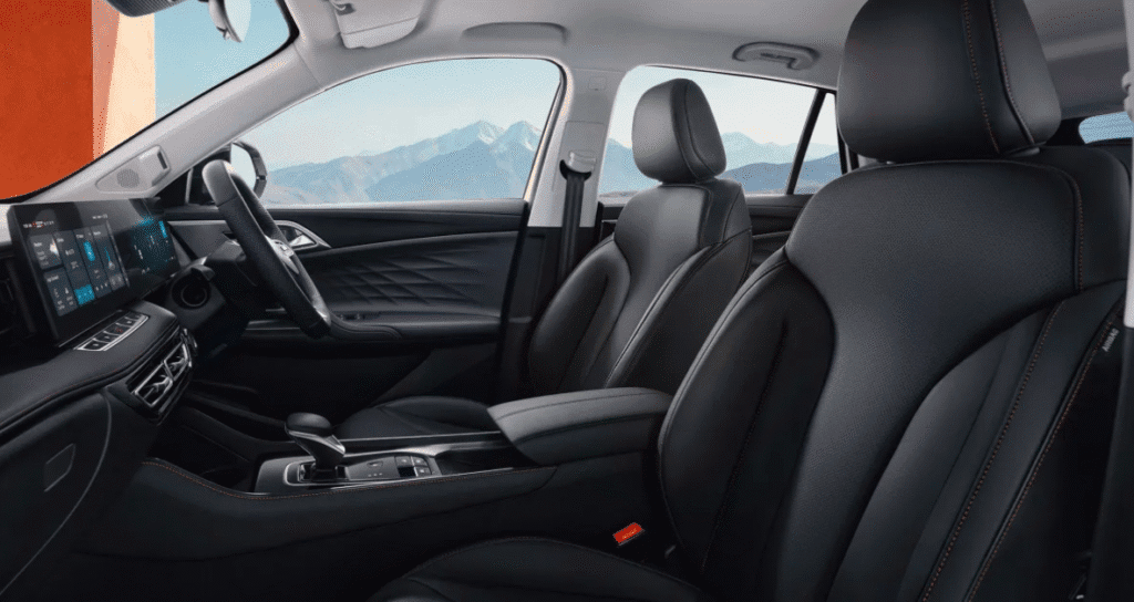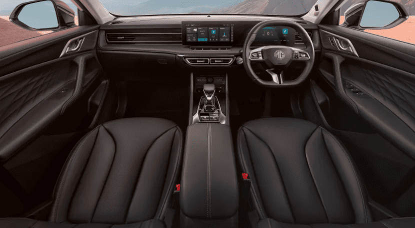 Усередині MG HS Hybrid+ не відрізняється від решти модельного ряду. На передній панелі розміщено два дисплеї по 12,3 дюйма. Центральний сенсорний екран підтримує бездротове підключення Apple CarPlay та Android Auto. У версії Trophy додатково передбачено оглядову камеру на 360 градусів, бездротову зарядку для смартфонів і покращену аудіосистему з вісьмома динаміками.
