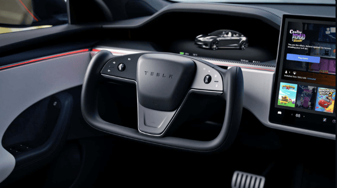 Оригінальне кермо у формі штурвалу, яке Tesla називає “йоко” (yoke), залишається опцією для версій Plaid. Воно коштує $1000.