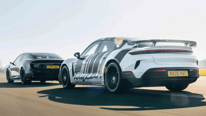 Журналіст Джек Рікс взяв із собою найпотужнішу версію Taycan — Turbo GT. Цей електрокар володіє потужністю до 1 092 к.с. і розганяється до 100 км/год за 2,2 секунди. Він також утримує рекорд кола серед серійних електрокарів на Нюрбургрингу (7 хв 07.55 сек).