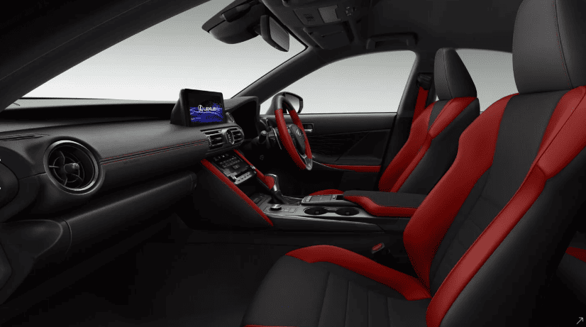 Інтер’єр особливої версії вражає якісними матеріалами. Тут поєднуються Ultrasuede (штучна замша) та перфорована шкіра на кермі й важелі коробки передач. Основні кольори салону — чорний і насичений червоний (Flare Red).