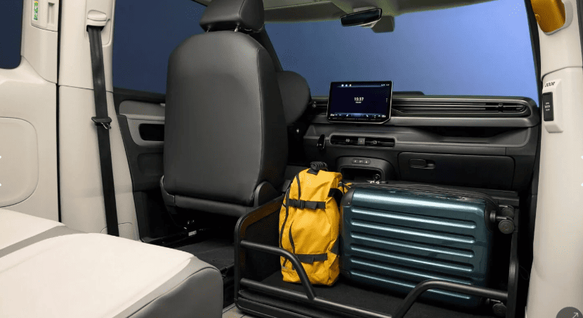 У салоні ID. Buzz AD також відбулися важливі зміни. Переднє пасажирське сидіння та центральну консоль прибрали. Завдяки цьому з’явилося більше вільного місця. Тепер там розміщено багажне відділення, куди можна покласти сумки, валізи чи інші речі.