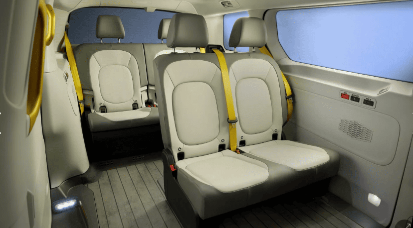 Всередині — оновлений салон. Тут є підлога з покриттям під дерево, великі ручки для зручності та чотири пасажирські сидіння. Також встановлені кнопки SOS, Support (підтримка) та Start/Stop.