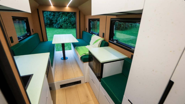 У салоні автодому немає жодного шматка дерева. Grounded використовує повністю перероблені матеріали для меблів, а конструкція зроблена з армованого алюмінію.