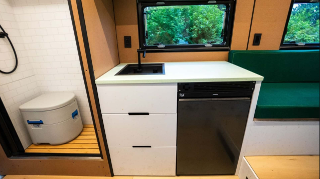 «Ми замінили дерев’яні шафи на міцні алюмінієві рами й 100% перероблені матеріали без використання деревини. Удосконалили кожну стінну панель і меблевий модуль, щоб створити стильний та функціональний інтер’єр. Додали моторизоване підйомне ліжко, яке перетворюється на ліжко розміру California King, а також нові утеплені задні двері, які покращують енергоефективність, не обмежуючи огляд».