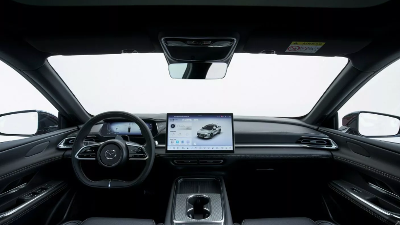 Окрім технічних характеристик, привабливість Mazda 6e не обмежується лише зовнішнім виглядом. Усередині автомобіля також все зроблено зі смаком. Хоча інтер’єр може здатися дещо мінімалістичним для деяких, кермо виглядає стильно, а плаваюча центральна консоль має преміальний дизайн. Великий сенсорний екран мультимедіа додає сучасності.