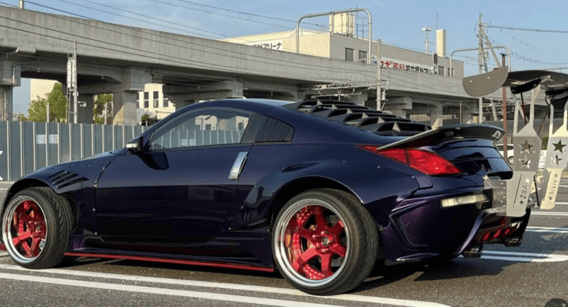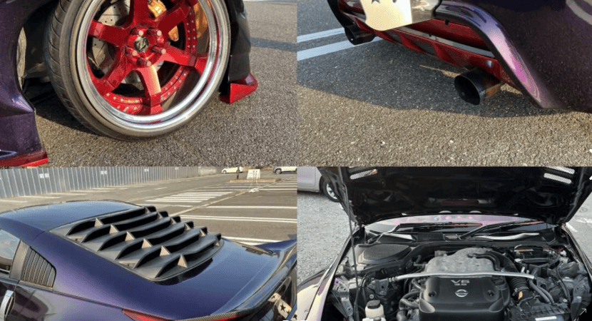 Цей незвичайний Nissan 350Z зараз продають на Yahoo! Auctions у Японії. У нього є свої переваги. Наприклад, яскравий металік-фіолетовий колір кузова виглядає дуже ефектно. Також має непоганий вигляд розширені колісні арки. Але, як це часто буває у світі тюнінгу, коли хтось починає переробляти машину, зупинитися вже важко.