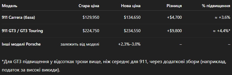 Інші моделі Porsche подорожчали менше – приблизно на 2,3%, але дешевшими теж не стали.