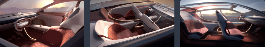 Головна фішка інтер’єру — “Ring”, спеціальний дисплей-арка, що охоплює простір від однієї стійки до іншої. Його функціональність змінюється залежно від режиму водіння — коли керує водій або коли керування бере на себе автопілот. Також тут є центральний контролер у вигляді кулі та інтерфейс, натхненний “червоточинами” — виглядає футуристично, як і належить концепту.