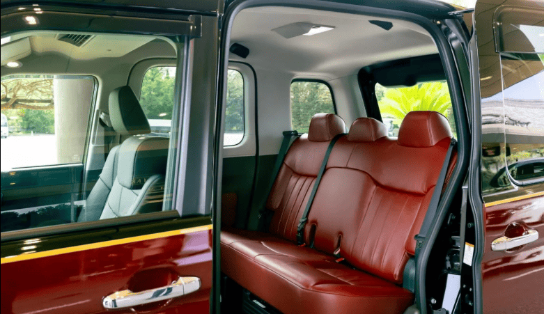 Усередині — ще більше змін. Заднє сидіння оббите справжньою червоною шкірою, яка замінила стандартну антибактеріальну тканину. Така зміна створює більш вишукану атмосферу для молодят. Решта інтер’єру залишилася без змін і нагадує про звичайне міське таксі.