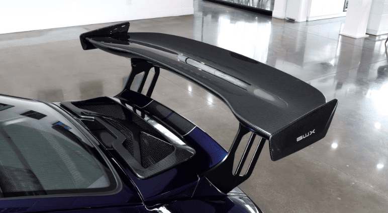 GWX буквально одягнений у карбон. Вентильовані передні крила, задні частини кузова, пороги, капот, бампери, дифузори та заднє антикрило – усе зроблено з легкого композитного матеріалу і має унікальний дизайн, створений спеціально для GWX. Це робить авто не тільки неймовірно легким, але й ефектним на вигляд – воно немов оживає під променями сонця.