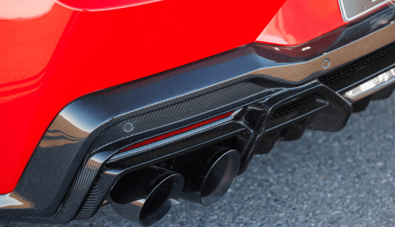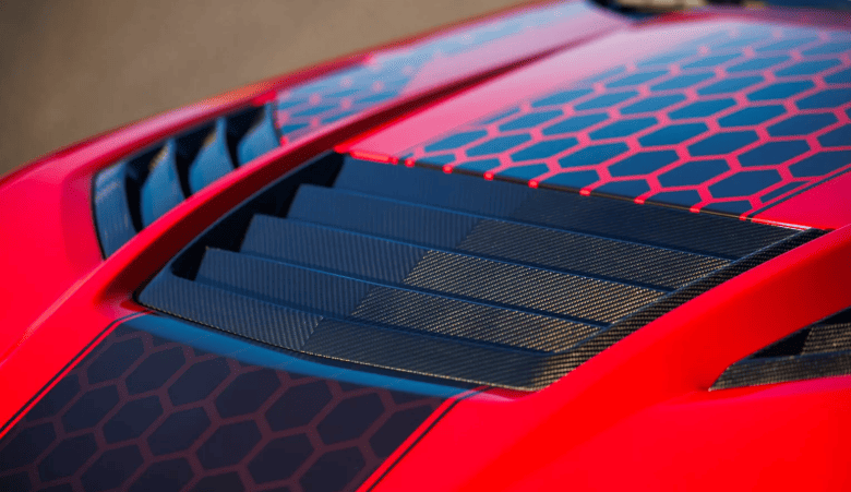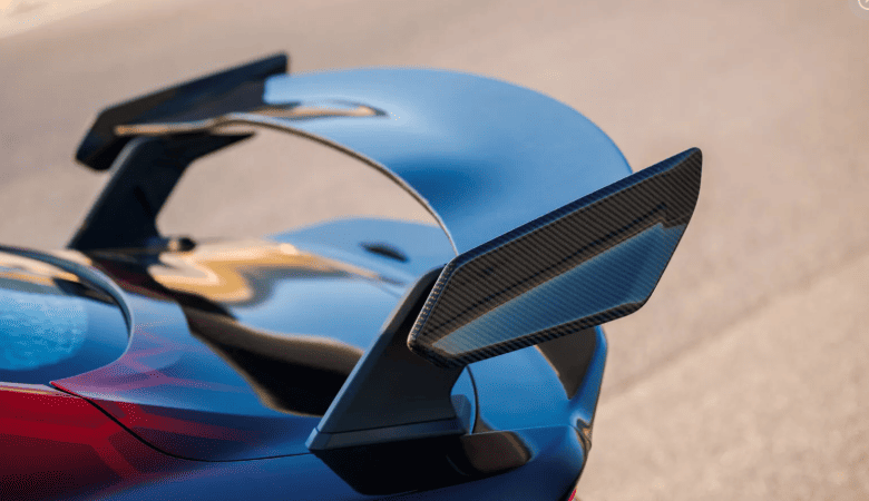 - Кузов із вуглепластику включає передні крила, спліттер та великий задній спойлер.