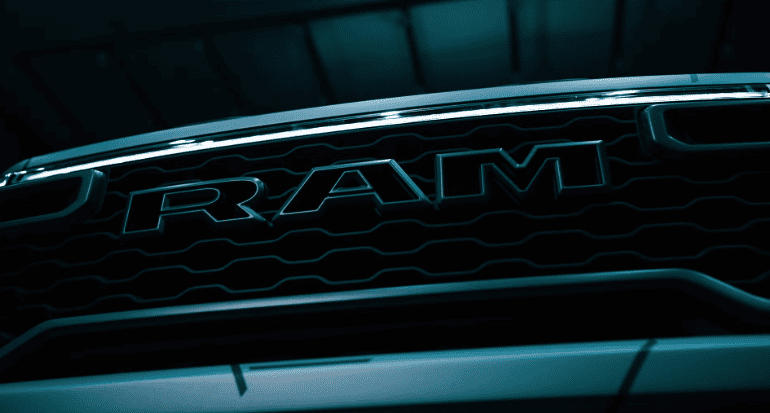 Пікап отримав фірмову решітку з великими літерами RAM, вузькі фари з обох боків і світлову панель на всю ширину зверху. На капоті — стильний повітрозабірник з трьома LED-елементами, запозичений у Ram TRX, потужного V8-пікапа, повернення якого вже підтвердили.