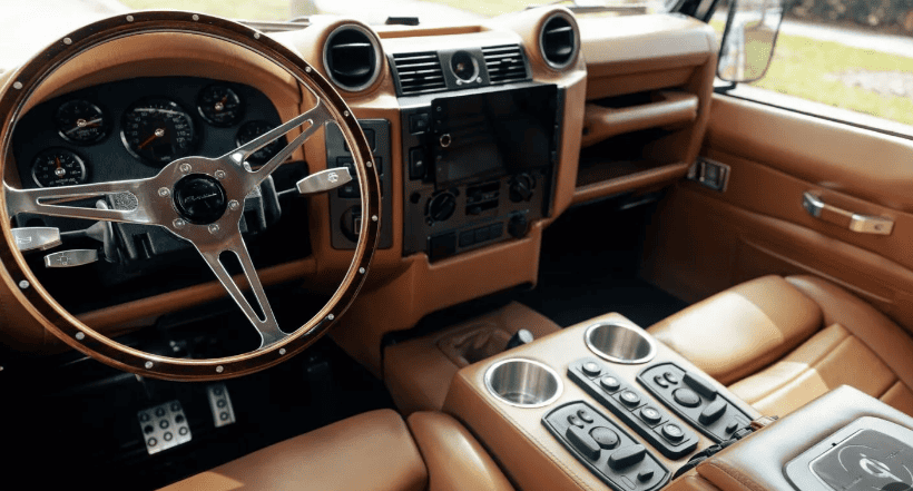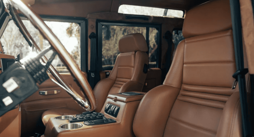 Жоден рестомод Defender не буде повноцінним без оновленого салону, і Project Powder Keg не став винятком. Автомобіль отримав ортопедичні сидіння Recaro, оббиті шкірою Veluto Pelle, нове кермо Exmoor Evander, індивідуальні прилади, алюмінієві декоративні елементи та сучасний інформаційно-розважальний дисплей.